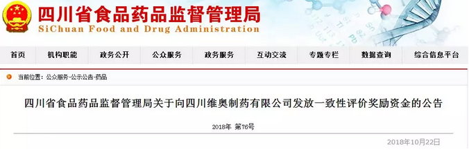 四川4家企业分别获一致性评价奖励150万元